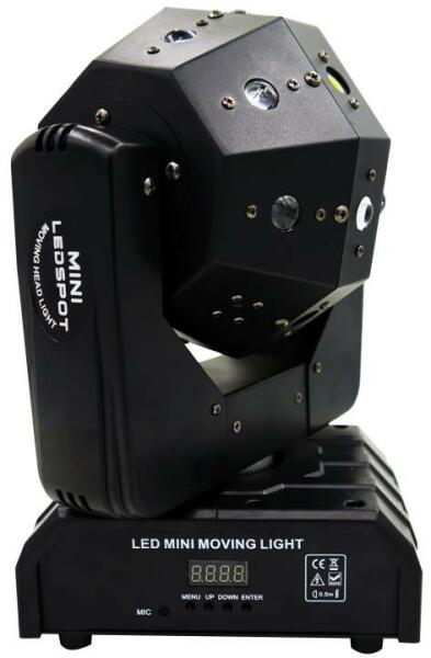 Termékleírás: - Fényforrás: LED RGBW és vörös zöld lézer - Áramfelvétel: 55W - DMX csatorna: 16/18 csatorna - Teljesítmény: 120W - Forrás: 16 DB*3 W LED (R4 G4 B4 W4) - Piros lézer: 100mw*2db - Zöld lézer: 50mw*2db - Csatorna: 16/18CH - Villogó: 4db*15W - Forgatási szög: X-tengely 600 fok, Y-tengely korlátlan elforgatás - Vezérlő mód: Auto, Hang, Master-Slave, DMX512 - A