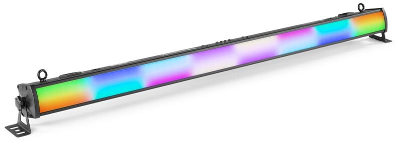 Műszaki adatok: - 224x SMD RGB LED - 3, 5, 8, 24, 48 vagy 53 DMX csatorna - 16 vezérelhető szakasz - DMX és Stand-alone mód - Master/slave funkció - Állítható érzékenységgel aktiválható hang - 54 Beépített effekt - Előre programozott műsorok - 25 előre beállított szín - 24 hatásminta - DMX be/kimenet 3 tűs XLR-en keresztül - IEC-csatlakozó bemenet/kimenet - Tömeg: 1,65 k