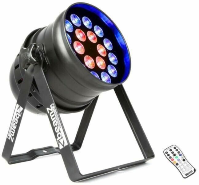 BeamZ Professional PAR-64 RGBW (18x12W) DMX Quad LED reflektor + IR távirányító Hivatalos magyarországi forgalmazótól. Leírás: Extra nagy fényerejű, professzionális használatra tervezett PAR-64 lámpa, 18 darab 12w teljesítményű quad LED-del szerelve. A négy alapszín segítségével szinte bármilyen színt képes kikeverni. Digitális kijelzővel rendelkezik, mely segítségéve