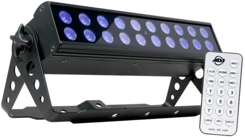Az UV LED BAR 20 IR egy nagy teljesítményű ultraibolya LED-es háttérvilágítás, amely vezeték nélküli távirányítóval rendelkezik a be-/kikapcsolás és a villogási sebesség egyszerű vezérléséhez. 20x 1 wattos UV LED-del működik, mindössze 30 W maximális teljesítményfelvétellel, és 10 x 40 fokos sugárzási szöggel rendelkezik. Körülbelül 50 000 órás LED-élettarta