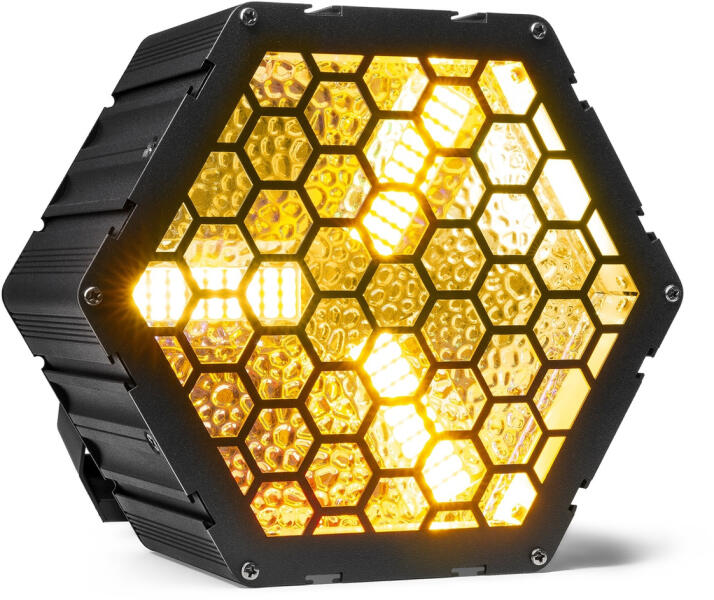 Műszaki adatok: - Deco vintage reflektor nagy teljesítményű LED-ekkel - 3x 30W sárga LED (2200k) - 72x 0,5W-os SMD RGB LED (háttéreffekt) - DMX és stand-alone üzemmód - Hang aktiválható állítható érzékenységgel - Előre programozott műsorok - Effekt mód 127 különböző effekttel és állítható sebességgel - Vezérlőpanel LED kijelzővel - 100% lineáris fényerő szabály