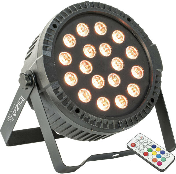 LED PAR lámpa, 18 x 1 W 3in1 LED, auto, DMX, master-slave, távirányító, extra vékony kialakítás