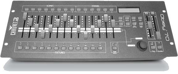 Fényvezérlő, DMX 512, 384 csatorna, MIDI A nagyobb show-k több lehetőséget követelnek és egyszerűbb programozást. Az Obey 70 áthidalja a kisebb rack vezérlők és a nagyobb pultok közötti rést. - Univerzális DMX-512 vezérlő - Összesen 12 intelligens fény vezérelhető, mindegyiken 32 csatorna - 30 bank, 8 scene, 240 scene max. - 384 DMX csatorna - 6 szett chase 240 scene-nel -