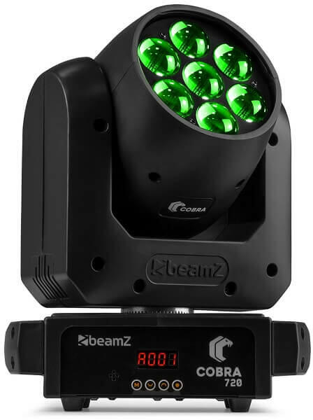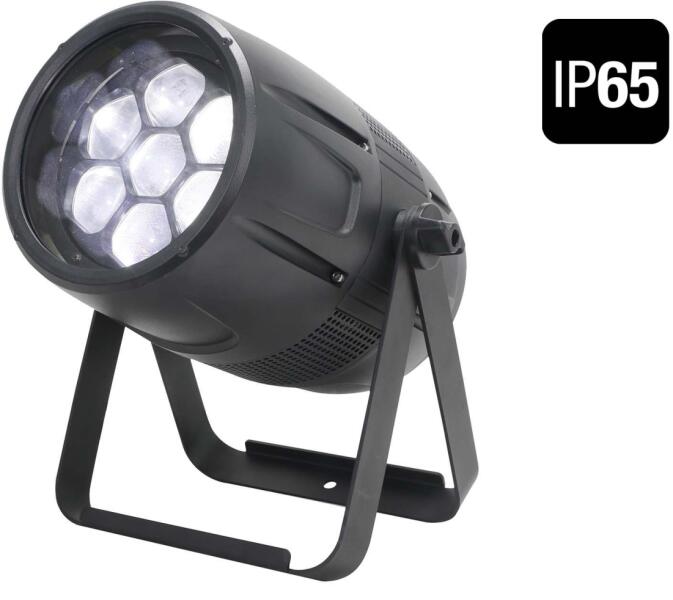Műszaki adatok: - 7x 20W-os nagy intenzitású RGBW LED-ek - Elektronikus lineáris zoom - Vezérlési mód: DMX 512, Master/Slave, Auto, Hang aktív - 0-100% elektronikus dimmer - 16 bites finom pásztázás/dőlésvezérlés - Vezérlőpanel LED kijelzővel - DMX be-/kimenet 3 pólusú XLR-en keresztül - Tápcsatlakozó bemenet - Tápcsatlakozó kábel és biztonsági zsinór mellékelve - Ter