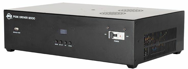 A Pixie Driver 8000 kifejezetten az ADJ Pixie Strip 30, Pixie Strip 60 és Pixie Strip 120 számára készült. Egyszerű és sokoldalú vezérlési lehetőségeket kínál, beleértve az egyszerű fedélzeti kézi fényerő-szabályozást és a villogó vezérlést, valamint 8160 max. pixel teljes képpont-leképezési vezérlését. Kling-Net, maximum 1360 pixel Art-Net vagy sACN (streaming ACN)