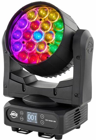 A Vizi Wash Z19 egy professzionális mozgófejes mosóberendezés változtatható motoros zoommal (10 ~ 60°) és tizenkilenc 20 W-os Quad (RGBW / 4-IN-1) LED-del. 3 vagy 7 zónás LED-gyűrűs vezérléssel, sima, 16 bites fényerő-szabályozással 0-100% között, zárolási be- és kimeneti funkcióval a láncos tápellátásig, 3-tűs és 5-tűs DMX be-/kimenettel és beépített USB-vel. por