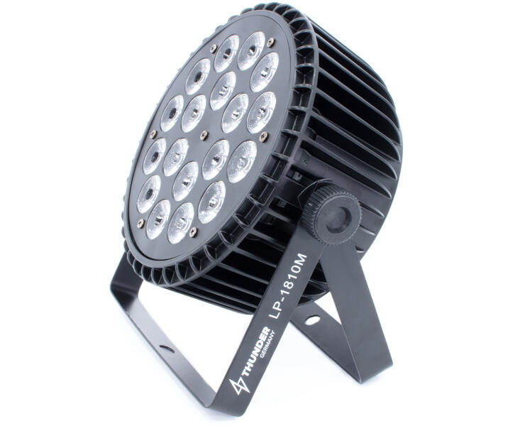 Műszaki adatok: - Fényforrás: 18db 4/5/6-in-1 LED - A fényforrás élettartama: 50 000 óra - Tápellátás: AC90V-240V/50-60Hz - Sugárzási szög: 25° - Vezérlési mód: Automatikus/hang/DMX/Master-slave - DMX-csatornák: 8/9/10 - Súly: 2,5 KG - Méret: 220x220x130mm Termékleírás: A Thunder LP-1810M egy nagyon sok oldalú, 18x1W teljesítményű LED reflektor. Számos felhasználási t