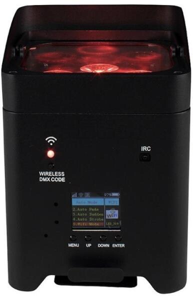 -6x18W RGBWA + UV 6IN1 LED -akkumulátoros -DMX, iOS és Andorid vezérlés -Töltési idő: 4 óra -Akkumulátor ideje :egyszínű: kb. 26 óra, auto mód: kb. 12 óra Termék neve : Par Light 6 * 18w akkumulátoros DMX, iOS és Andorid -SPECIFIKÁCIÓ : Feszültség: AC100-240V 50-60Hz -Teljesítmény : 100w -Fényforrás: 6x18W RGBWA + UV! 6IN1 LED -lencse szöge: 25 ° -Vezérlési mód: D