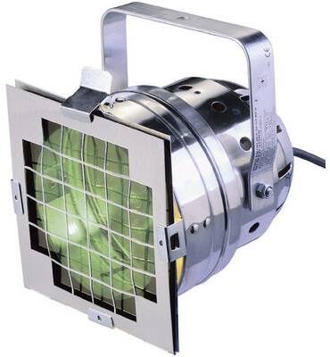 Fényszóró ház, PAR 56 Short Jó minőségű, masszív fényszóró ház alumíniumból. Kiválóan alkalmas színházba, diszkóba és színpadra. A nagyon könnyű kivitel lehetővé teszi a problémamentes felszerelést. Jellemzők: Beépített szilánkosodás elleni védelem · Színszűrő fólia tartó · Szerelő kengyel és csatlakozóvezeték (kb. 70 cm) · Foglalat: GX 16D. Műszaki a