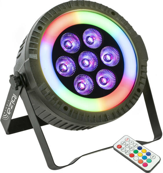 LED PAR lámpa, RGBW, 36x 3 W + 48x SMD LED, auto, DMX, master-slave, távirányító, extra vékony kialakítás