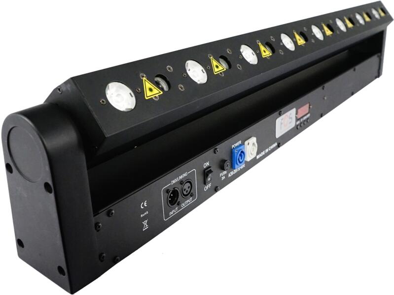 Műszaki adatok: - 12x10W 4 az 1-ben LED - RGBW Színkeverés teljes telítettség-szabályozással - Színhőmérséklet 2700-8000K - CTB és CTO szín - Könnyű ABS ház - 10 vagy 18 DMX csatorna - Beépített programok - DMX és Stand-alone mód - Master/slave funkció - 0-100% Dimmer - Hangvezérelt - Automatikus mód - DMX be/kimenet 3 tűs XLR-en keresztül - Vezérlőpult LED kijelzővel -