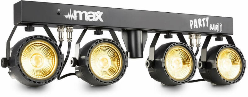 Műszaki adatok: - 4x 20W 3-in-1 COB LED - előprogramozott showelemek - 0-100% linearis tompítás - RGB (Piros, Zöld, Kék) fénykeverés - Hang vezérelt, beépített mikrofonnal rendelkezik - DMX in/output via 3-pin XLR - Automata vezérlés állítható sebességgel - 50.000 óra LED élettartam - Masszív összeszerelés - Igényes formatervezés - Tartozék állvány, távirányító - 7 D