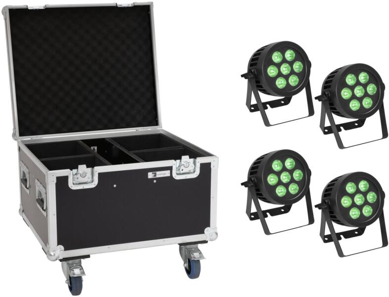 Műszaki adatok: - Beépített akkumulátor: 11,1V 8,8Ah - 2x Derby 4W-os 4 az 1-ben RGBW LED - 2x PAR doboz minden 6x 2W-os 4 az 1-ben RGBW LED - DMX és önálló mód - 6 vagy 30 DMX csatorna - Master/slave szinkronizálás - Állítható érzékenységgel aktiválható hang - Automata üzemmód állítható sebességgel - 5 Előre programozott műsorok - DMX be-/kimenet 3 tűs XLR-en keresztü