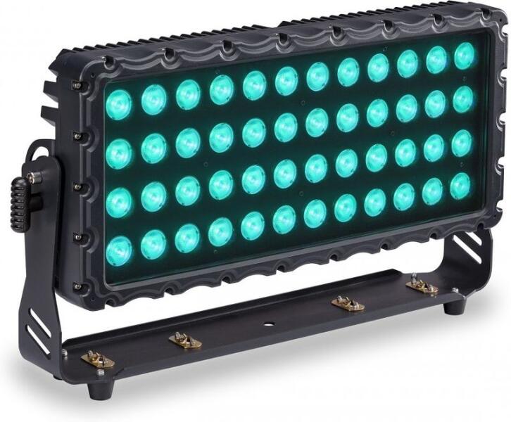 MOODWASHER Moodwasher series by Centolight was created to offer outdoor projectors suitable for all those architectural and live applications that require diffused lights (backdrops of scenes, architectural structures, etc. ) and with a medium-amplitude (36°) projection angle. The Moodwasher 4810WP has a light source consisting of 48 10W RGBW 4in1 LEDs arranged in 4 horizontal rows of 12 each. Th