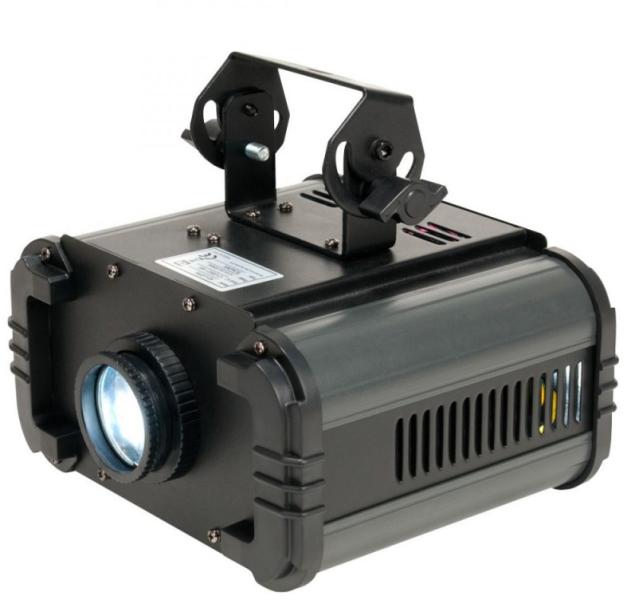 Gobo vetítő - 60W-os LED-del gyártott (7500K) gobo vetítő - 3 darab cserélhető objektív - 25 , 32 vagy 43 fokos kilépési szöggel - 4 darab gobo-val - Szabályozható forgásirány és fényerő - Gobo: 54mm (látható 33mm) - Tartozék infrás távirányító (ADJ UC-IR)