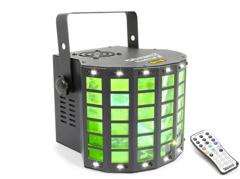 Műszaki adatok: - LED fényforrások - 4x3 db extra erős led valamint beépített lézer - RGBW (Red - Piros, Green - Zöld, Blue - Kék, White - Fehér) - RG lézer (Piros: 150mW, Green: 75mW) - Stroboszkóp: 16x SMD White LED - Nagy szórási szög - Hangvezérelt, beépített mikrofonnal rendelkezik - Állítható hangerő érzékenység - Állítható villogási gyorsaság - Automata funkci