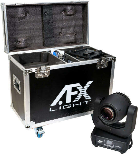 intelligens lámpa szett, 2db forgófejes, spot, 180W LED, 2 gobó tárcsa, flightcase