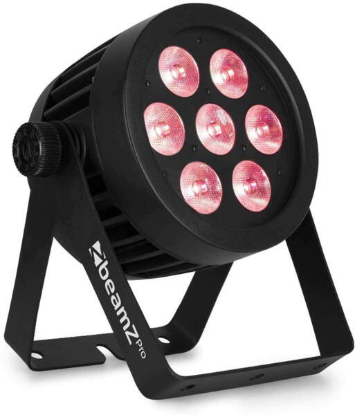 Műszaki adatok: - 7x10W 4 az 1-ben LED - RGBW színkeverés - 25x különböző színbeállítások - Színhőmérséklet 2700, 3200, 4300, 5600, 6500, 8000K - 9x előre programozott műsor és állítható sebesség - Elektronikus fényerőszabályozás: 0 - 100% - 3, 4, 5 vagy 10 DMX csatorna - Stroboszkóp effektus - Választható színhalványítás és vaku - DMX és Stand-alone mód - Maste