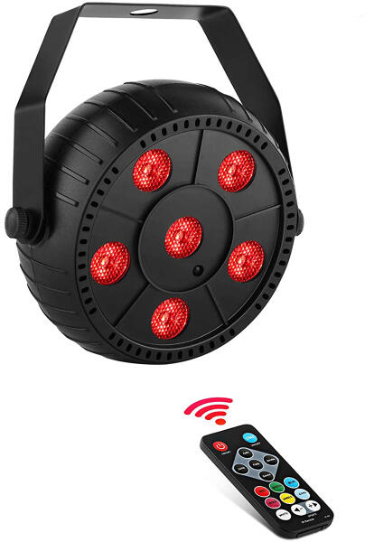 Műszaki adatok: - 6 x 1.5 W LED - RGB (Red-Green-Blue) színkeverés - Elektronikus fényerő szabályozás: 0 - 100% - Hangvezérlés - Stroboszkóp effektus - Stand-alone mód - Automata önvezérlés - Alumínium ötvözet ház - IR távirányító - Beépített akkumulátor (3.7 V, 2200 mAh) - Működés akkumulátorról: 3-8 óra - Töltési feszültség: 5 V - Töltőfejes USB kábel tartoz