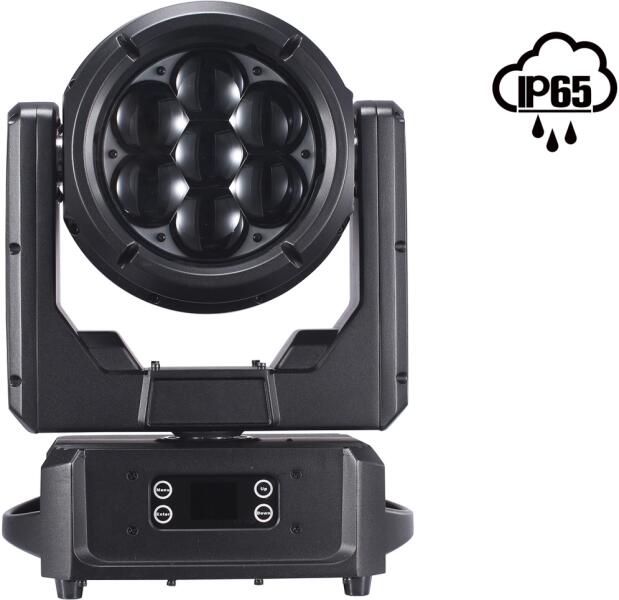 Intelligens lámpa, forgófejes, Spot, 127W LED - Fényforrás: 127W fehér LED - Színtárcsa: 8 szín + fehér, félszínek, rainbow effekt - GOBO tárcsa: 7 forgó Gobo + üres, Rainbow effekt, Gobo Shake - Prizma: Forgatható 3-as prizma - Csatorna szám: 15 vagy 19 DMX csatorna - Strobe effekt: 0-20Hz - Dimmer: elektromos (0-100%) - Motoros fókusz - Frost filter - Pan: 540o , 8/16 Bit-en - T