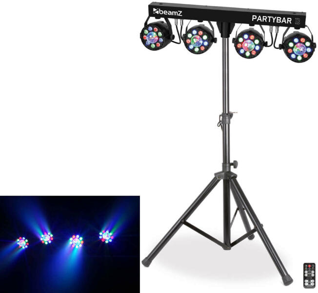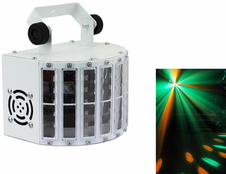 Műszaki adatok: - LED fényforrások - PAR effekt: 9x 1W nagy fényerejű RGB LED - Magic Ball effekt: 3x 1W RGB LED - RGB (Piros, Zöld, Kék) - Hang vezérelt, beépített mikrofonnal rendelkezik - Hangra színek váltása, villogtatása - Automata vezérlés állítható sebességgel - 100.000 óra LED élettartam - Masszív összeszerelés - Igényes formatervezés - Tartozék állvány - 8 D