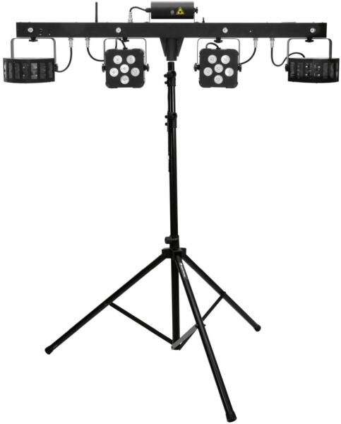 Műszaki adatok: - 2 db 6x10W RGBW LED-ek - Egyszerű, biztonságos szállítás - Strapabíró hordozó doboz alumínium peremezéssel - DMX vezérlés - Automata, vagy hangvezérelt mód - Világítási szög: 2-24° - Elektronikus Zoom - Stroboszkóp: 2-21 Hz - Automata panoráma és dőlésszög korrekció - LCD Kijelző - PowerConn betáp csatlakozó - PowerConn kábellel ellátva - Gyorszár