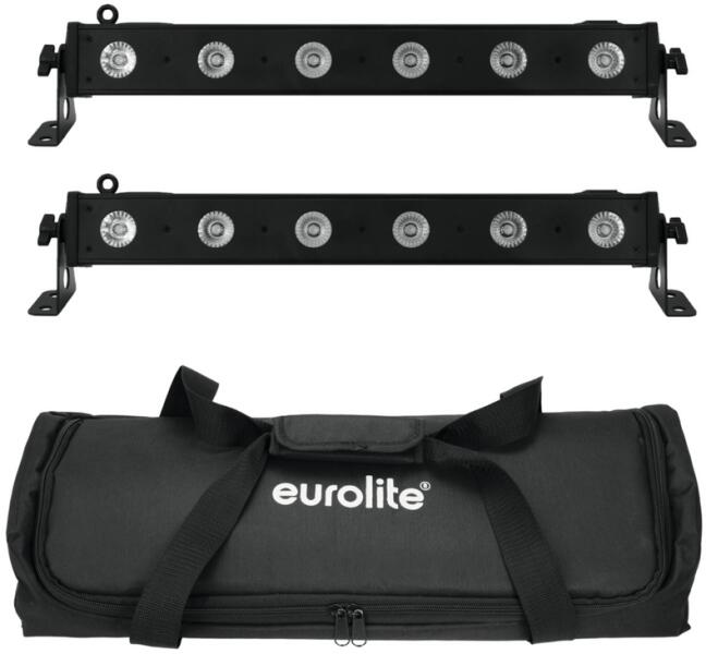 Az itt látható egyedi termékleírások és képek a DJSoundLight Kft tulajdonát képezik. 2x Spotlight bar with 6 x 4 W 4in1 LED including soft bagEUROLITE LED BAR-6 QCL RGBW BarLED bar (60 cm) with 6 x 4 W 4in1 LED (RGBW) Operable in stand-alone mode or via DMX Microphone sensitivity adjustable via Control Board Supports QuickDMX - the wireless DMX system from Eurolite Built-in phantom-powere