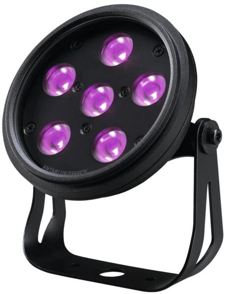 Weather-proof PRO UV spot with 6 x 1.9 W UV LED, wavelength (365 nm) The Antari DarkFX Spot 510 IP is an efficient high-output and low-power consumption UV LED spot that delivers a peak wavelength of 365 nm and radiant flux output of 4500 mW at full intensity with minimum visible light. This ensures all UV-reactive materials reflect perfectly with stunningly bright and vivid colors. Equipped with