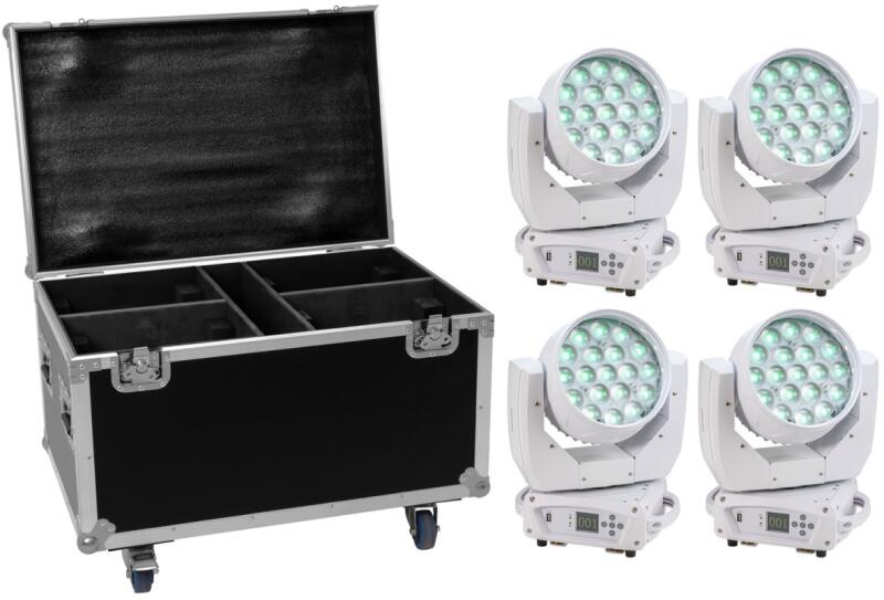 Washlight with 19 intense 15 W 4in1 LEDs, motorized zoom and white housing EUROLITE LED TMH-X4 Moving Head Wash Zoom wh 19 powerful LEDs 15 W COB (chip-on-board) 4in1 QCL RGBW (homogenous color mix) 3 segments controlled separately Positioning within 630° PAN, 270° TILT Auto position correction (feedback) Exact positioning (16 bit resolution) Zoom motor driven Integrated show programs The device