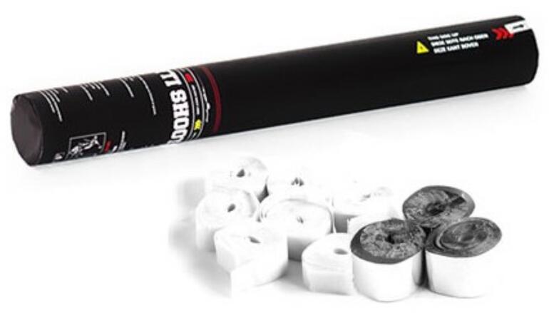 Handheld streamer cannon Top quality for professional use on stages, in discotheques etc. Maximum load of paper streamers inside Shoots the streamers up to 12 m Mechanism activated by turning the bottom Complies with SP 371(1) BAM tested Flame resistant - B1 certified Fun for young and old Available in different sizes, shapes and colors For application areas such as: Carnival