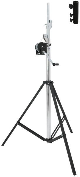 Az itt látható egyedi termékleírások és képek a DJSoundLight Kft tulajdonát képezik. High-quality winch-stand with matching massive adapterEUROLITE STT-400/85 Winch Stand TÜV/GSHigh-quality winch-stand, maximum load 85 kg, maximum height 400 cm Made of steel TÜV/GS certified, certificate available CE certified complying with DIN EN ISO 12100-2, DIN 15560-27, certificate available 1-gear