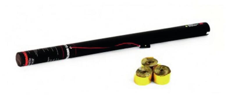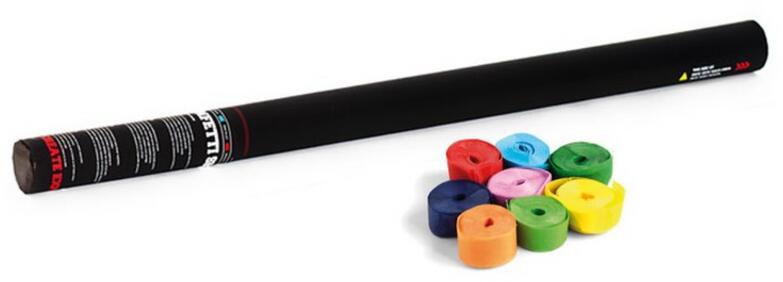 Handheld streamer cannon Top quality for professional use on stages, in discotheques etc. Maximum load of paper streamers inside Shoots the streamers up to 20 m Mechanism activated by turning the bottom Complies with SP 371(1) BAM tested Flame resistant - B1 certified Fun for young and old Available in different sizes, shapes and colors For application areas such as: Carnival