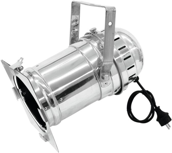 PAR-56 housing long with plug Spotlight housing for decoration or display windows, discotheques Comes fully-wired with black silicone cable, stable earthing in the housing, directly clamped ceramic socket and safety-plug Protection grille on the rear housing cover - complies with CE regulations For lamps with max. 500 W Rugged aluminum housing Strong aluminum mounting bracket Delivered with color