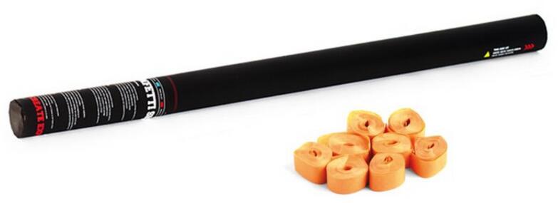 Handheld streamer cannon Top quality for professional use on stages, in discotheques etc. Maximum load of paper streamers inside Shoots the streamers up to 20 m Mechanism activated by turning the bottom Complies with SP 371(1) BAM tested Flame resistant - B1 certified Fun for young and old Available in different sizes, shapes and colors For application areas such as: Carnival