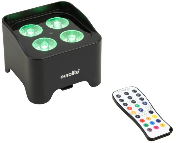Mini battery-powered uplight with RGBW LEDs and IR remote control Cordless, flexible and versatile Battery operation up to 9h depending on program used 4 powerful LEDs 4 W 4in1 QCL RGBW (homogenous color mix) Color change adjustable; color fade adjustable; color blend stepless Strobe effect; uplight effect Direct color selection for 10 preset colors The device is cooled by passive convection cooli