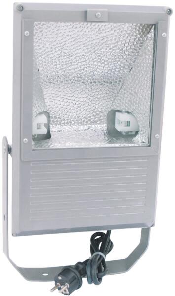 Asymmetrical outdoor spotlight (IP65) for 150 W discharge lamp Static spot Asymmetrical, i. e. more light upwards than downwards For architectural lighting or large stage backgrounds Aluminum die-cast housing Jet-proof construction for outdoor use Ready for connection with silicone cable and safety-plug For bright 150 W discharge lamp Available in silver, black or white Selectable The device is co
