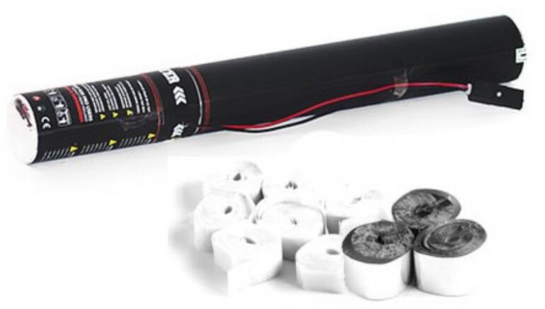 Electric streamer cannon Streamer ammunition for E-Shot, WI-Shot and Confetti Gun Top quality for professional use on stages, in discotheques etc. Maximum load of paper streamers inside Shoots the streamers up to 12 m The effect is activated by an electric impulse Complies with SP 371(1) BAM tested Flame resistant - B1 certified Fun for young and old Available in different sizes, shapes and colors