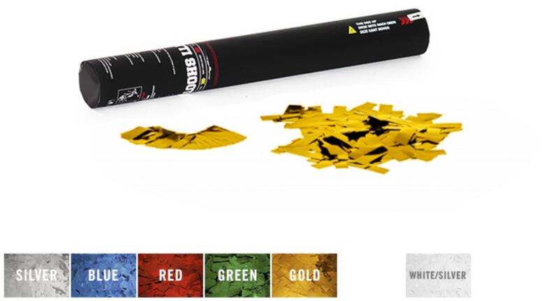 Handheld confetti cannon Top quality for professional use on stages, in discotheques etc. Maximum load of paper confetti inside Shoots the confetti up to 6 m Mechanism activated by turning the bottom Complies with SP 371(1) BAM tested Flame resistant - B1 certified Fun for young and old Available in different sizes, shapes and colors For application areas such as: Carnival
