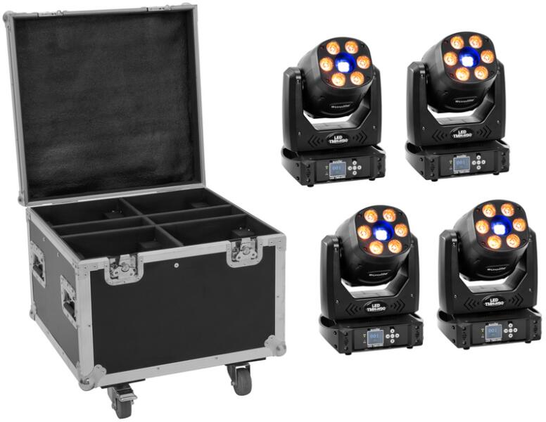 LED Moving Head hybrid spot/wash with color wheel, static and rotating gobo wheel, prism and focusEUROLITE LED TMH-H90 Hybrid Moving-Head Spot/Wash COB Bright spotlight and full-fledged washlight in one device Positioning within 540° PAN and 200° TILT Exact positioning via 16 bit PAN/TILT movement resolution Rotating 3-facet prism with variable speed Strobe effect with 2-30 flashes per second Bu