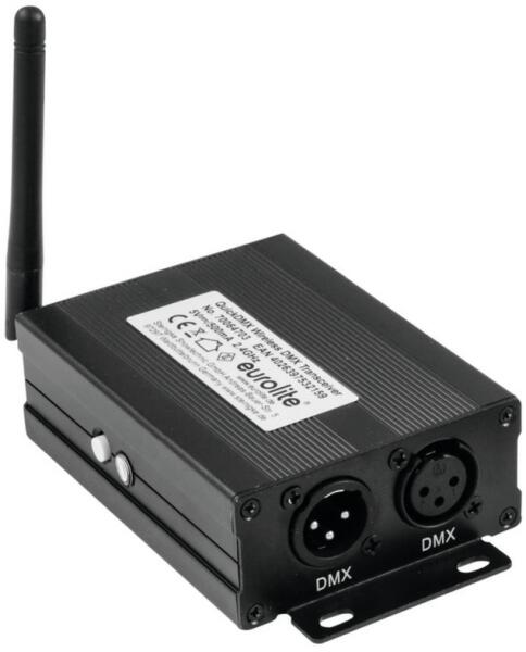 Az itt látható egyedi termékleírások és képek a DJSoundLight Kft tulajdonát képezik. Wireless DMX system 2.4 GHz DMX input and output, 3-pin XLR Auto-switching transceiver Wireless DMX eliminates extensive cabling between DMX controller and the DMX-controlled units in lighting installations Due to GFSK modulation with 78 channels, interference-free operation also alongside other QuickDMX