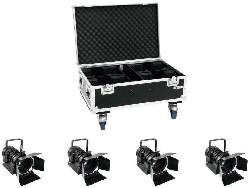 Az itt látható egyedi termékleírások és képek a DJSoundLight Kft tulajdonát képezik. 4x fanless Pc spot including PRO flightcase with wheelsEUROLITE LED THA-40PC Theater-Spot bkFanless PC spot (DMX), 57 W LED in warm white, color rendering index (CRI) > 90 DMX-controlled operation or stand-alone operation with Master/Slave function Comfortable addressing and setting via control panel w