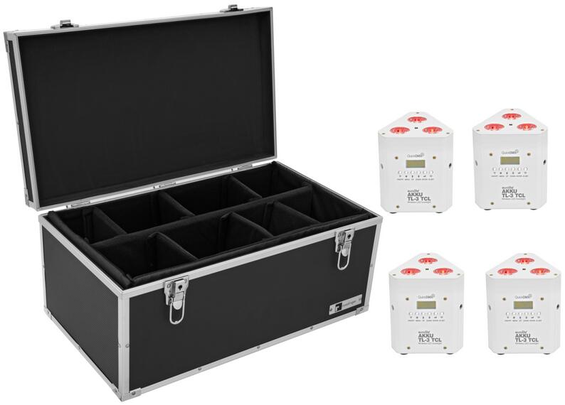 Az itt látható egyedi termékleírások és képek a DJSoundLight Kft tulajdonát képezik. 4x white spot for lighting within trussing, 3 x 3 W 3in1 LED including caseEUROLITE AKKU TL-3 TCL Trusslight QuickDMX whSpot for lighting within trussing, 3 x 3 W 3in1 LED, QuickDMX transceiver Compact and bright Cordless, flexible and versatile 3 high-power 3 W RGB LEDs (4in1) Battery operation up to 16