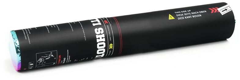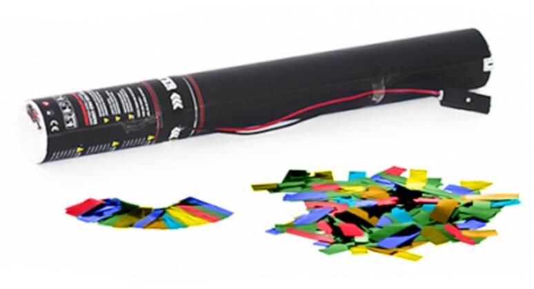 Electric confetti cannon Confetti ammunition for E-Shot, WI-Shot and Confetti Gun Top quality for professional use on stages, in discotheques etc. Maximum load of PVC confetti inside Shoots the confetti up to 6 m The effect is activated by an electric impulse Complies with SP 371(1) BAM tested Flame resistant - B1 certified Fun for young and old Available in different sizes, shapes and colors