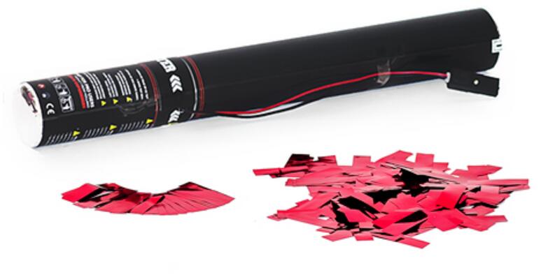 Electric confetti cannon Confetti ammunition for E-Shot, WI-Shot and Confetti Gun Top quality for professional use on stages, in discotheques etc. Maximum load of PVC confetti inside Shoots the confetti up to 6 m The effect is activated by an electric impulse Complies with SP 371(1) BAM tested Flame resistant - B1 certified Fun for young and old Available in different sizes, shapes and colors