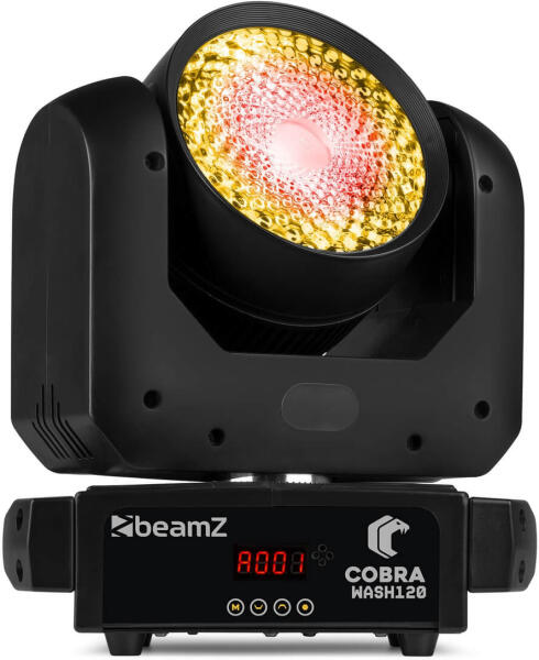 Műszaki adatok: - Márka: beamZ - Termék színe: Fekete - Fényforrás: 4 az 1-ben LED - Színek: Piros, zöld, kék, fehér - LED teljesítmény: 120W - LED-ek száma: 1 - Sugárzási szög: 24° - Fényszög: 46° - Fényerősség: 13.860 lx @ 1m - Fejmozgás: Pásztázás 540° - Fejmozgás: Dőlés 205° - Aura effektgyűrű: 26x RGB SMD LED - Másodpercenkénti villogási sebesség: 1 - 22H