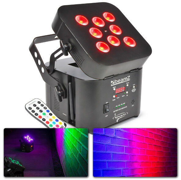 RGB PAR 8x 3W-os háromszínű LED-del. A beépített 2,4 GHz-es adó és vevőegység, az akkumulátor és a mellékelt távvezérlő segítségével teljesen ...