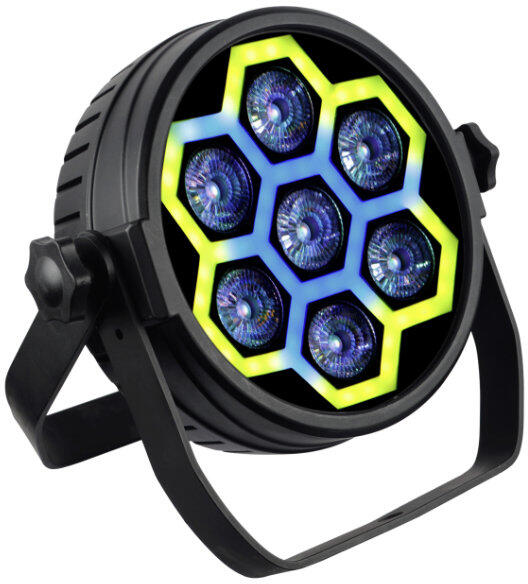 Fényforrás: 60 x RGB SMD LED, 7 x RGBWA+UV LEDNyitási szög: 26°Megvilágítási érték: 9480Lux @ 1mVezérlés: DMX (19 csatorna), Master/Slave, hangvezérelt, ...
