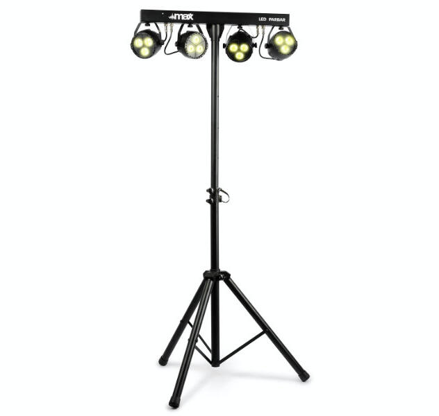 4 Led PAR-ból álló készlet egy T-elemen, az RGB és a Cool White keverésének lehetőségével, hogy rendkívül szép egyszínű színeket kapjunk...