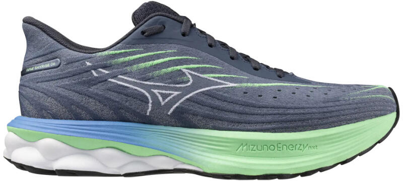Fokozd a mindennapi futásodat a Mizuno Wave Skyrise 6 cipővel, amely lebegő futásérzetet nyújt. A könnyű MIZUNO ENERZY NXT anyag a felső középtalpban a MIZUNO ENERZY anyaggal párosul az alsó középtalpban, és együtt a puhaság, az energia-visszanyerés és a párnázás egyedülálló kombinációját biztosítják. A MIZUNO WAVE technológia fokozza a stabilitást , a Smooth Stret