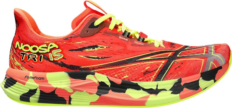 Az Asics Noosa TRI 16 futócipőt úgy tervezték, hogy segítse az energikus lábtempót és a fejlett energia-visszanyerést . A merész színek és minták légáteresztő , mérnökileg tervezett hálós felsőrésszel találkoznak, hogy segítsenek hűvösen és kényelmesen tartani a lábadat. A középtalp FF BLAST PLUS párnázást tartalmaz, amely segít könnyű és puha ütéscsillapít